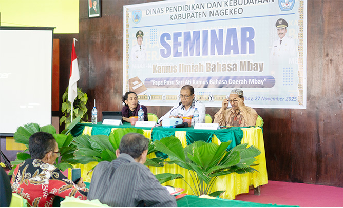 Upaya pelestarian bahasa daerah terus menjadi fokus penting Pemerintah Kabupaten Nagekeo. Bahasa Mbay, sebagai salah satu warisan budaya yang mengandung identitas, nilai, dan cara pandang masyarakat, membutuhkan kerja kolektif lintas lembaga agar tetap hidup dan diwariskan kepada generasi berikut. Dalam semangat inilah diselenggarakan Seminar Buku Kamus Bahasa Mbay di Hotel Sasandi, sebagai forum yang mempertemukan pemerintah, pegiat budaya, pendidik, tokoh adat, dan masyarakat untuk memperkuat kolaborasi bersama.